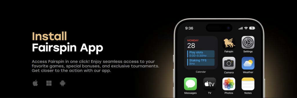 Since there is no dedicated Fairspin mobile app to download, the site’s mobile version is accessible from anywhere via a PWA.